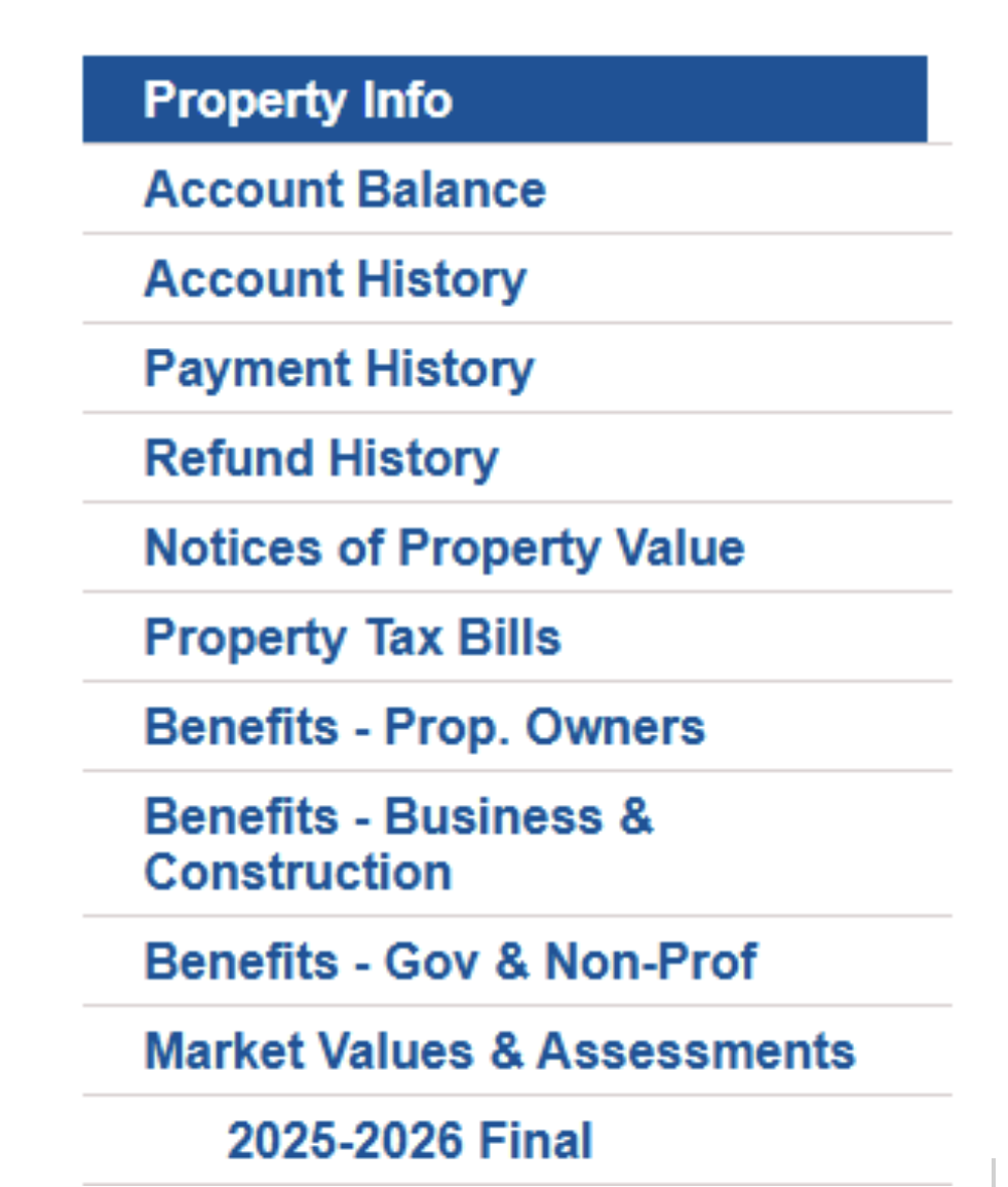 4 – On the left under “Property Info,” click “Property Tax Bills”